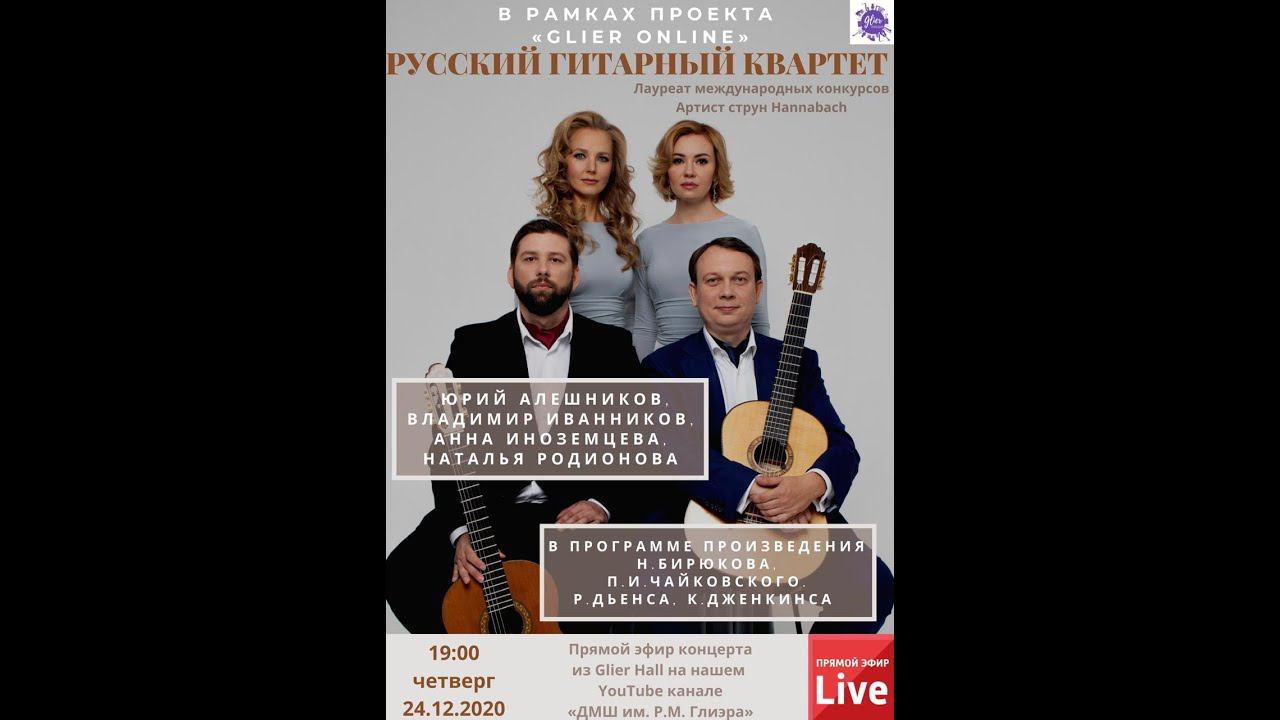 Прямая трансляция из "Glier Hall" концерта серии проекта "Glier Online" Русский гитарный квартет Состав: Юрий Алешников Владимир Иванников Анна Иноземцева Наталья Родионова Лауреат международных конкурсов Русский Гитарный Квартет был основан в 2012 году в Москве. В составе ансамбля профессиональные исполнители на классической гитаре: Юрий Алешников, Анна Иноземцева, Наталья Родионова и Владимир Иванников. Каждый из участников квартета к моменту объединения творческих потенциалов успешно реализовал себя как сольный концертный исполнитель и участник камерных ансамблей. За свою карьеру исполнители ансамбля в совокупности завоевали более пятидесяти наград различных достоинств на престижных международных конкурсах и фестивалях. В 2018 году коллектив завоевал победу на международных конкурсах в России и Беларуси. Музыкантов объединяет высокий уровень исполнительского мастерства, любовь к родной музыкальной культуре и стремление развивать русскую гитарную исполнительскую традицию. Ссылка на курсы повышения квалификации: https://vk.com/app5898182_-196402375#s=1136017 Благодарим за помощь в подготовке трансляции и предоставленное оборудование "Steinberg" компанию "Yamaha Music" .