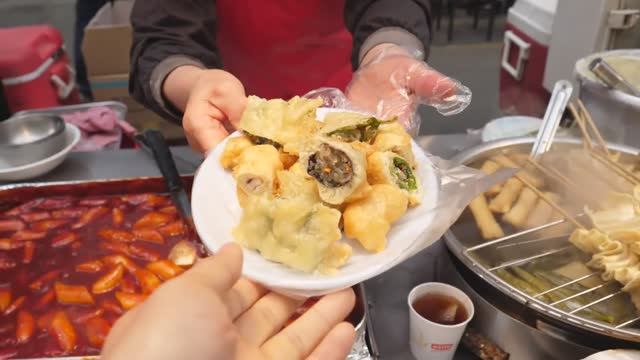 Жареная домашняя еда за 500 вон, токпокки и рыбный пирог