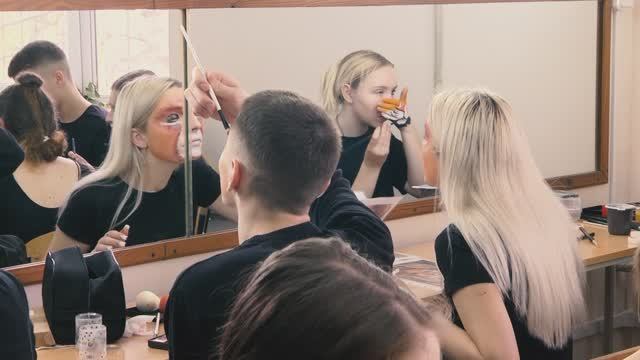 Заслуженный работник культуры ЛНР, доцент кафедры театрального искусства Академии Матусовского Тамара Митителу в рамках Фестиваля инновационной педагогики провела открытый урок на тему: «Инновационная методика гримировального искусства в контексте создания сценического образа». Участниками мастер-класса стали студенты первого и второго курса специальностей актер театра и кино и режиссер театрализованных представлений и праздников. Они создавали грим на руках и лицах, после чего состоялся показ работ в виде небольшого театрализованного представления.