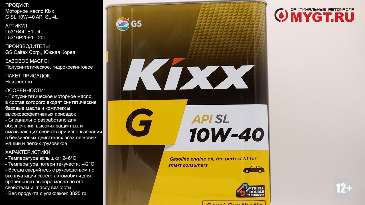 Продукт: Моторное масло Kixx G SL 10W-40 API SL 4L Наш телефон: 8-800-550-57-22 ПН-ПТ 9.00-17.00 (МСК+4) Артикул: L531644TE1 - 4L L5316P20E1 - 20L Производитель: GS Caltex Corp., Южная Корея Базовое масло: Полусинтетическое, гидрокрекинговое Пакет присадок: Неизвестно Ссылка для покупки: https://mygt.ru/Oil/selection/kixx-g-sl-10w-40-gold-4-l.html ОПИСАНИЕ Полусинтетическое моторное масло, в состав которого входят синтетические базовые масла и комплексы высокоэффективных присадок. Моторное масло Kixx G SL специально разработано для обеспечения высоких защитных и смазывающих свойств при использовании в бензиновых двигателях всех легковых машин и легких грузовиков. ПРИМЕНЕНИЕ Рекомендовано для всех четырехтактных бензиновых двигателей легковых машин, внедорожников и легких грузовиков, без турбонаддува и с турбонагнетателем, включая автомобили, оборудованные системами снижения токсичности выхлопных газов. Подходит для малых четырехтактных бензиновых двигателей мотоциклов и мобильного энергетического оборудования, для которых изготовители рекомендуют использовать обычные моторные масла для легковых автомобилей и не требуют применения специальных масел. ПРЕИМУЩЕСТВА Максимально увеличивает срок службы двигателя с помощью превосходного контроля износа и отложений при всех эксплуатационных условиях. Обеспечивает значительную экономию топлива благодаря уменьшению потерь на трение. Предохраняет от износа при запуске в холодных условиях благодаря превосходной низкотемпературной текучести. Обеспечивает мощность и экономичность благодаря уменьшению износа даже для самых сложных клапанных механизмов, включая механизмы с переменным выбором времени срабатывания. Характеристики: - Класс: SAE 10W-40 - Плотность при 15°C: 0.860кг/л - Кинематическая вязкость при 40°C: 99.5мм2/с - Кинематическая вязкость при 100°C: 15.1мм2/с - Индекс вязкости: 158 - Температура потери текучести: -42°C - Температура вспышки, COC: 246°C - Всегда сверяйтесь с руководством по эксплуатации своего автомобиля для правильного выбора масла по его свойствам и классу вязкости. Отличие упаковки оригинала: - Вес продукта с упаковкой (брутто): 3825 гр. - Фирменная форма металлической канистры с двумя рельефными полосами прокатки на каждой из четырех сторон канистры - Шлифовка метала на верхней и нижней части канистры параллельно длинной стороне упаковки - Специфический сварной шов на грани канистры (черная полоска шириной около двух миллиметров) - Дата на нижней части канистры в формате: ГГ.ММ.ЧЧ Ссылки на дополнительные материалы по продукту, а также SDS и PDS: http://nskrobot.ru/images/FOTO/MYGT_RU/MSDS_Kixx_G_SL_10W-40_en_40.pdf #характеристикимаслаL531644TE1 #моторноемасло #antonmygt #mygtru #mygtauto #oemcatalog #масломан Наш сайт: MYGT.RU Наш канал ПРАВДА ПРО АВТОМАСЛА: https://www.youtube.com/channel/UC5JygfcXAA5Xq18sxUx_wIQ/ Телефон: 8 800 550 57 22 Бесплатно по России Внимание! Полное либо частичное копирование данного материала без согласия автора допускается только при указании ссылки на источник (данный канал) Все права защищены ANTON_MYGT #anton_mygt #anton_voronkov #mygtauto #масломан #каталог масел и спецжидкостей