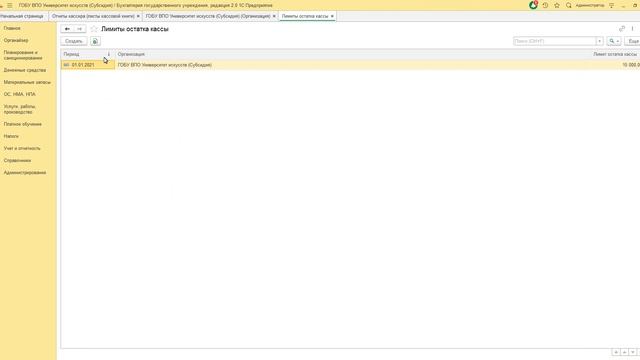 Лимит остатка кассы и работа с интерфейсом в 1С: Бухгалтерия государственного учреждения 8