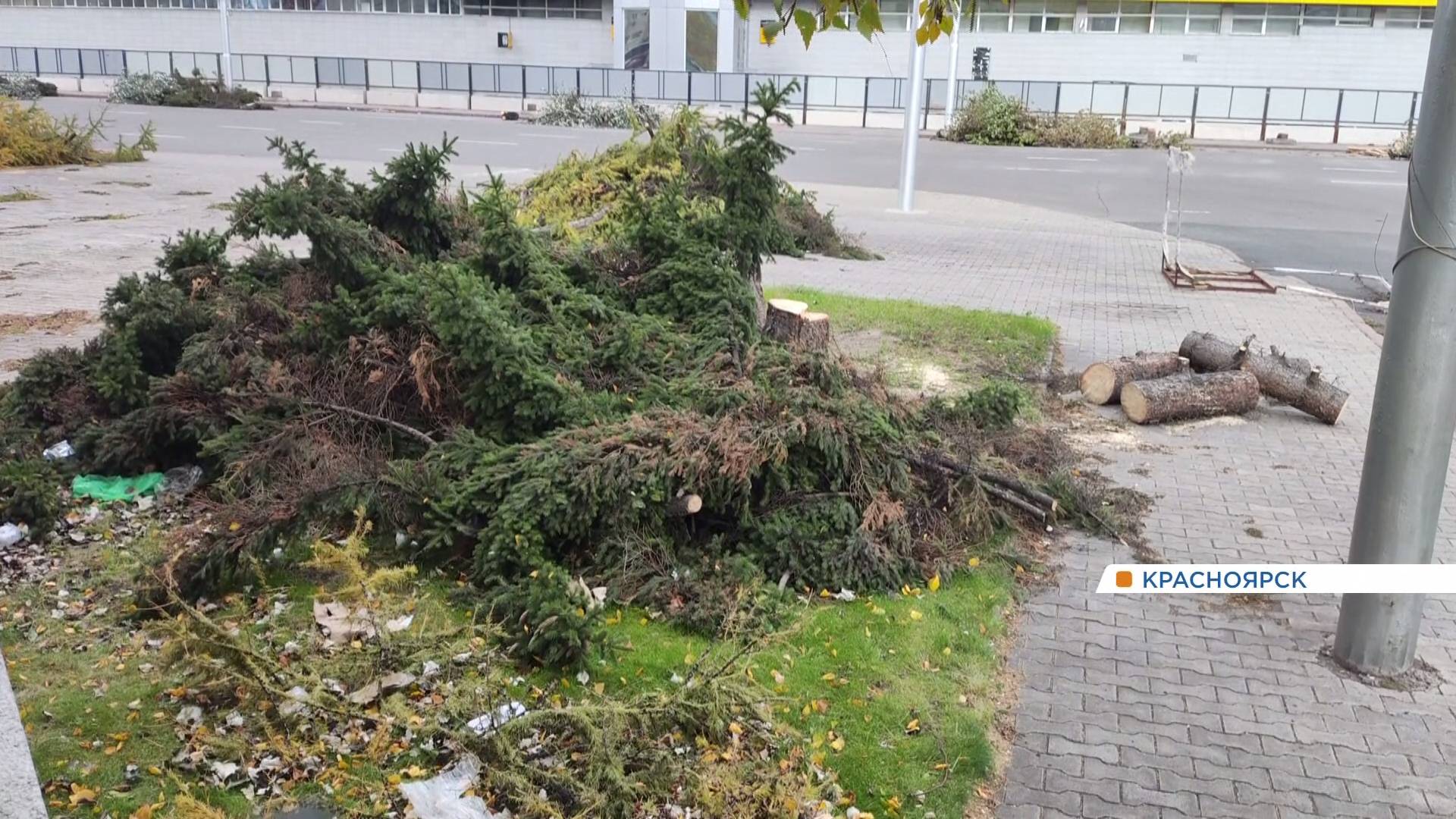 В центре Красноярска сразу в нескольких местах срубили десятки деревьев