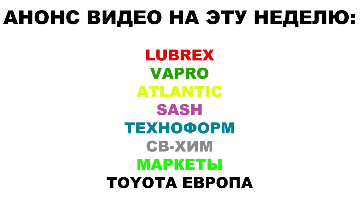 #LUBREX #vapro #ATLANTIC #SASH #ТЕХНОФОРМ #СВ-ХИМ #МАРКЕТЫ #TOYOTA ЕВРОПА #anton_mygt НАШИ КОНТАКТЫ: Звоните 8800-550-5722 пн-пт 9.00-17.00 Учитывайте разницу во времени. Мы находимся в Новосибирске по адресу Николая Островского, 111 к5 319 офис; 3 этаж Дополнительные номера: +79237754997 +79237751551 +79139155112 Обязательно подпишитесь на нас на ДЗЕН - это важно! https://dzen.ru/mygt Вот наш сайт: https://mygt.ru/oil/ ВНИМАНИЕ!!!! На ozon и wildberries представлен ОЧЕНЬ ограниченный выбор наших продуктов. Всё остальное есть у нас на сайте. Отправляем по России ЛЮБОЙ ТК. По вопросам наличия обращайтесь по вышеуказанным номерам. Вот наш официальный магазин на ozon ИП ВОРОНКОВ https://www.ozon.ru/seller/ip-voronkov-829866/products/ Вот наш официальный магазин на wildberries MYGT https://www.wildberries.ru/seller/1163651 Вот наш официальный магазин на yandex market ИП Воронков MYGT https://market.yandex.ru/business--ip-voronkov-mygt/67687783