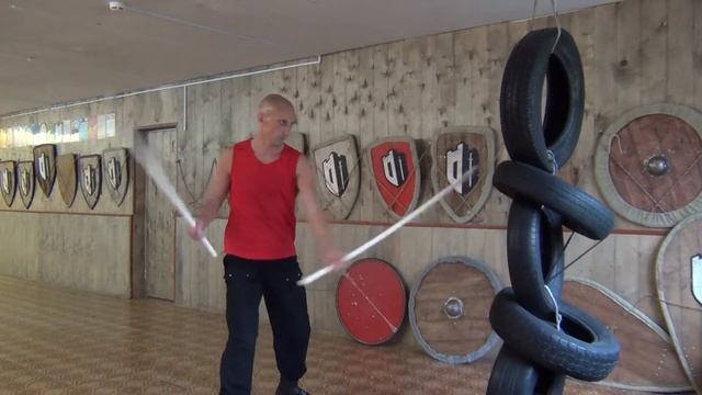 Наработка на воздухе и снарядах базовых координационных комбинаций с парным оружием, основанных на схеме горизонтальной восьмёркообразной траектории. Совмещение внахлёст верхней и нижней восьмёрки из видео https://www.youtube.com/watch?v=MoYYFBQarfE