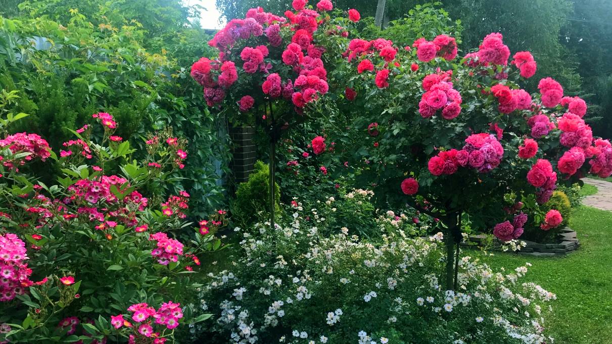 Штамбовые розы в саду. Интересные идеи.