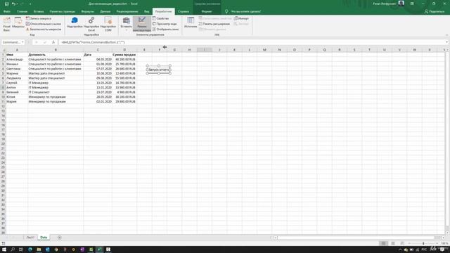 Добавление кнопки для запуска отчета. Основы циклов и отчётов. Программирование макросов в Excel.
