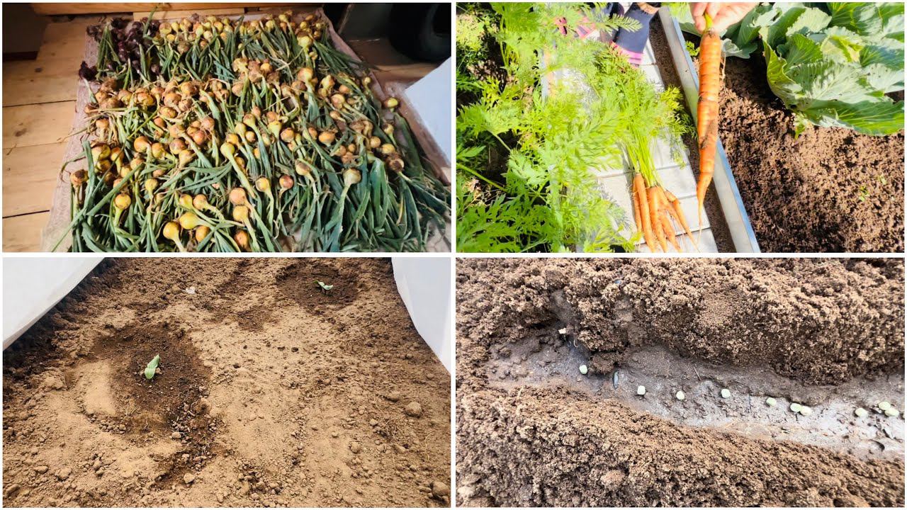 27 июля. Убираю лук севок. Вышли кабачки. Посадила снова горох. Свежая морковь