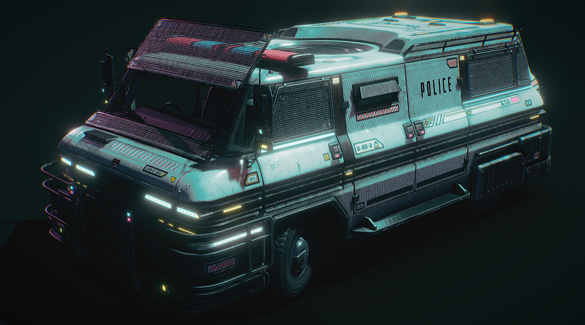 https://sketchfab.com/3d-models/cyberpunk-riot-police-van-c5df7bd23f0b416bb3ae7255aece597c https://sketchfab.com/quaz30 Hello! I’m not dead, yet. I was busy with other things. This is a model I intended to post a year ago for 1k followers, but now a year later I’m closer to 2k, so I guess it’s an early 2k followers special now. The included additional files contain other color variants, uncompressed textures in 4K and the model in .fbx format. I will soon upload a scene showcasing the other color schemes, and maybe add a burned-out version there too. UPDATE: I have uploaded a scene with all versions, including a burned-out one. It can be viewed here I hope this van was worth the wait, thank you for following! Cyberpunk Riot Police Van от quaz30,Cyberpunk,Riot,Police,Van,quaz30