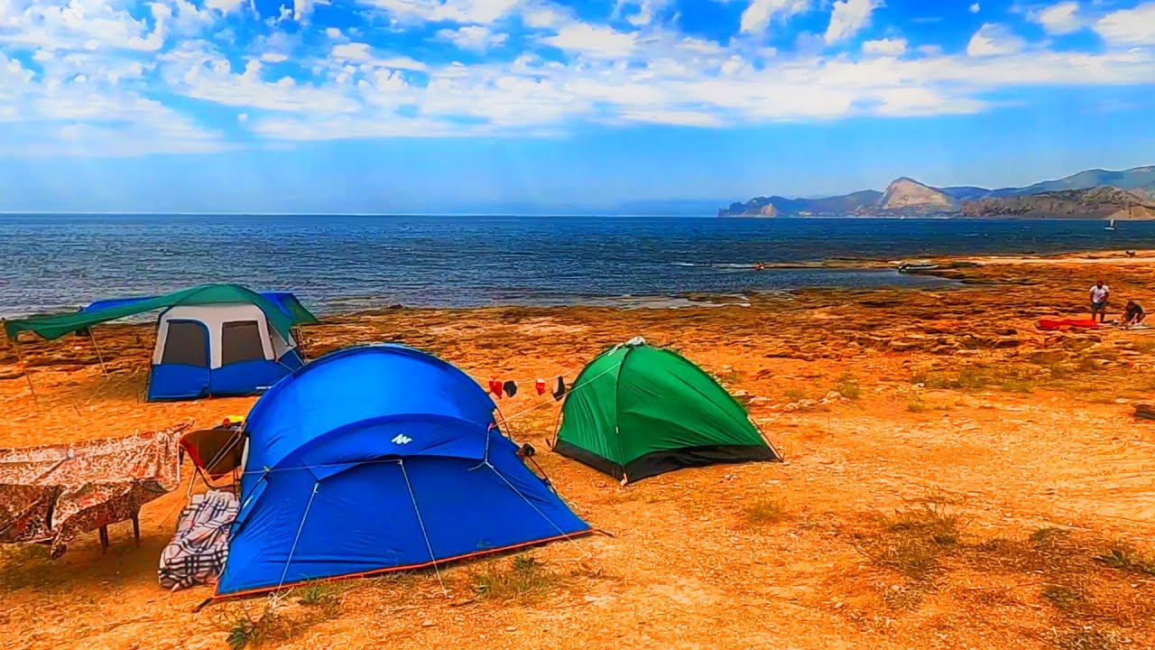 КЕМПИНГ В КРЫМУ НА БЕРЕГУ МОРЯ. ДИКИЙ ПЛЯЖ - МЕГАНОМ. НАБЕРЕЖНАЯ СУДАКА НА САМОКАТЕ. КРЫМ 2020.