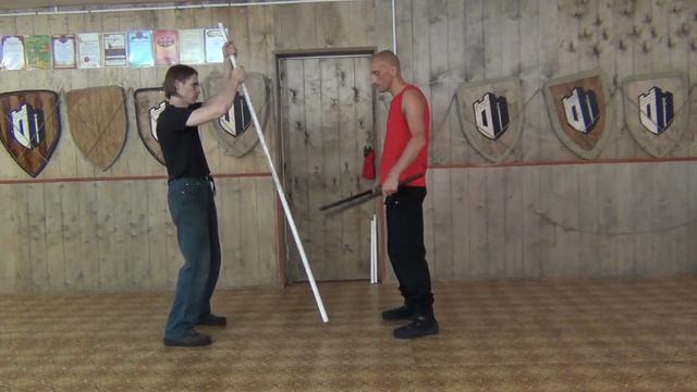 Упражнение, направленное на наработку совмещения передвижений с непрерывной ударной работой парным оружием.
