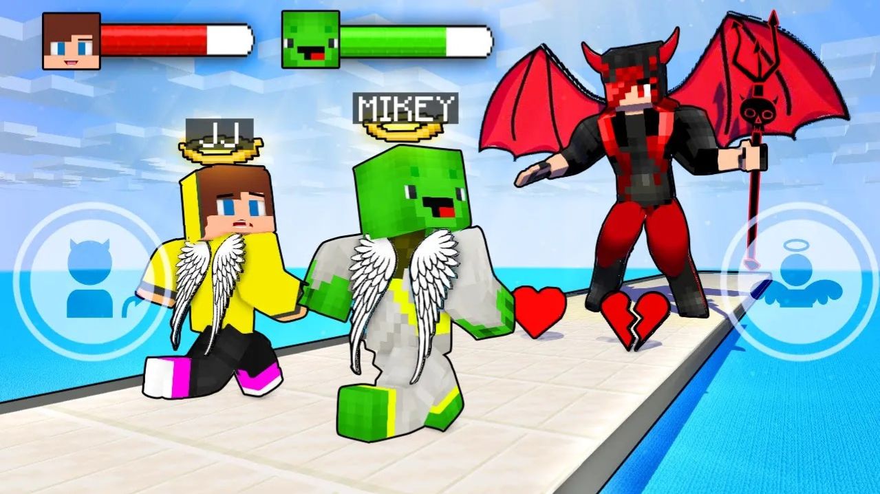 Джей Джей и Майки Энджелы против Гигантской девушки-дьявола в битве титанов. Майнкрафт Мультик