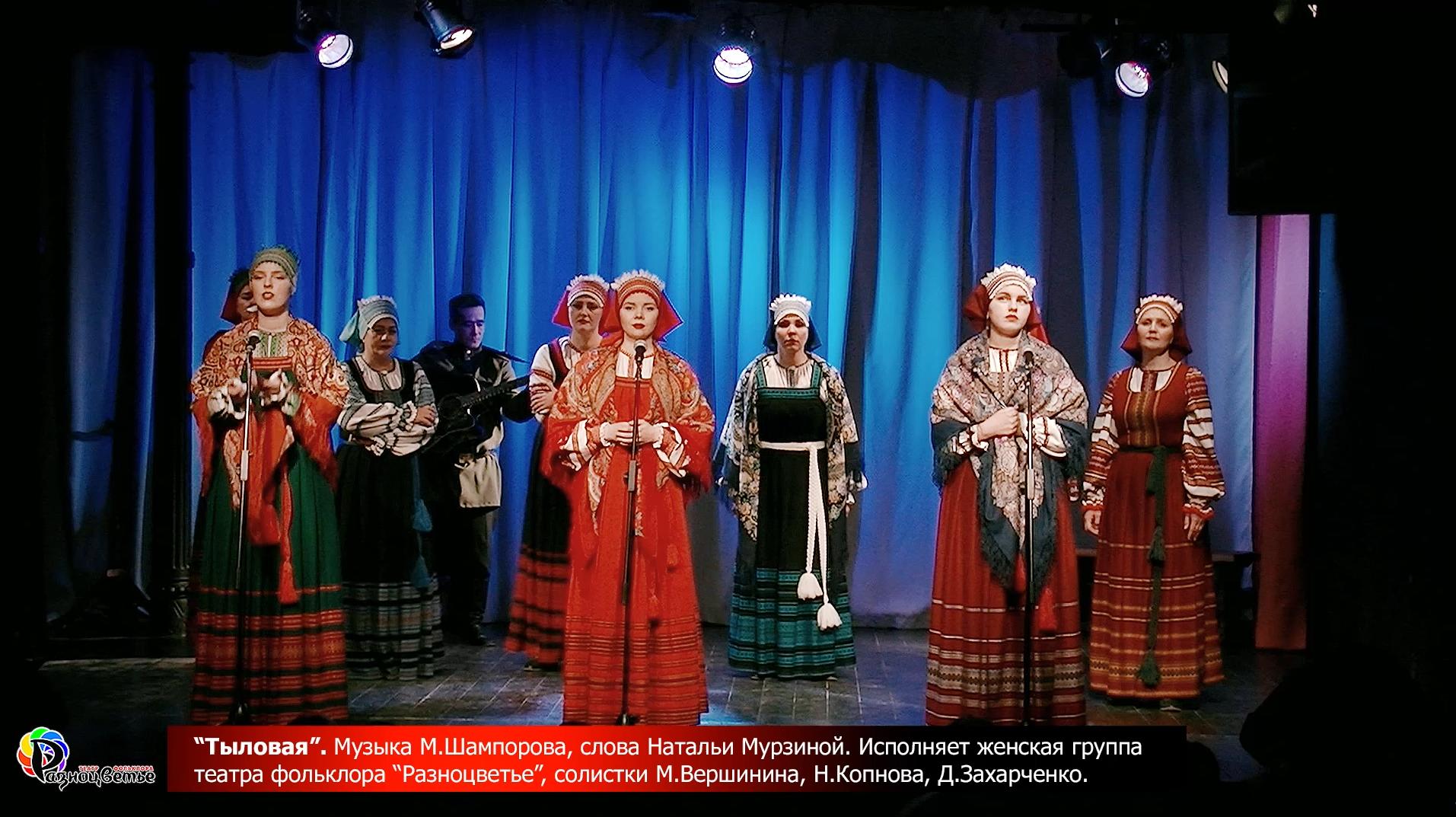 Музыка Максима Шампорова, слова Натальи Мурзиной. Исполняет женская группа театра фольклора «Разноцветье». Солистки М.Вершинина, Н.Копнова, Д.Захарченко, концертмейстер В.Чернявский. Концертная запись (26 февраля 2023г., г.Томск,ЗЦ «Аэлита», программа «Берегите Россию!»). Подробнее о песне на http://multicolors.pro/single/2023_02_tylovaya