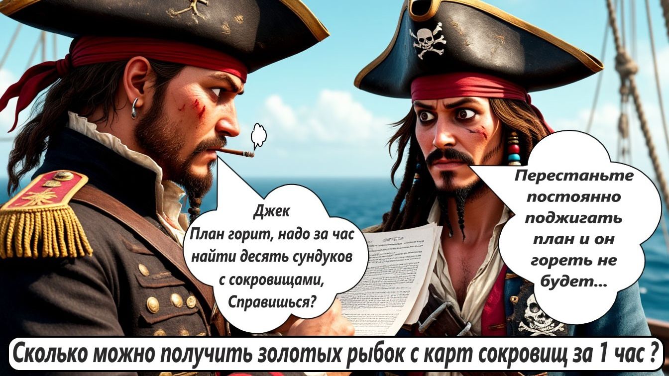 World of Sea Battle Сколько можно получить золотых рыбок с карт сокровищ за 1 час