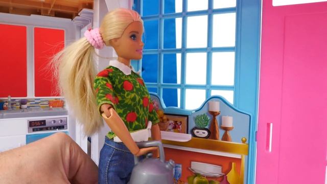 Видео про игрушки для девочек - Кукла Барби делает уборку и прихорашивается. Игры в Салон Красоты