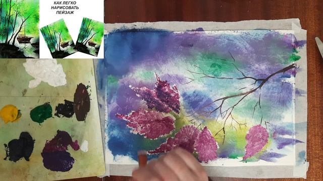 Как нарисовать сирень. Рисуем ветку сирени. Весна гуашью.