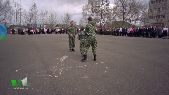 Показательные выступления членов военно-патриотического клуба «Барс» (г. Рыбинск) на традиционной торжественной линейке СОШ №5 имени 63–го Угличского пехотного полка, посвящённой Дню Победы.
