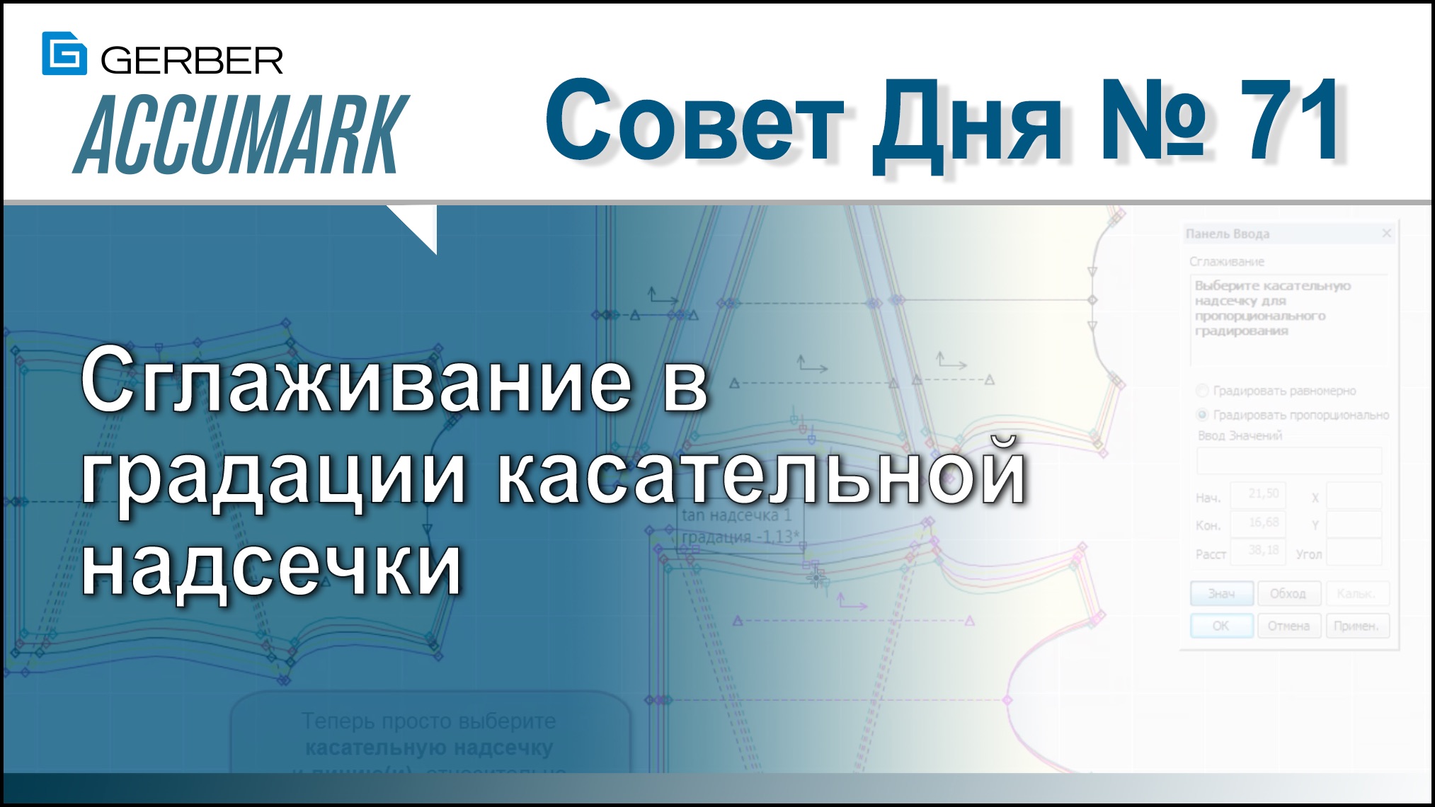 Бывают ситуации, когда стандартный метод работы с градацией надсечек не позволяет добиться быстрого результата. В нашем примере поставлена задача пропорционально разградировать и совместить во всех размерах талиевую надсечку. Причем деталь полочки целая, а деталь спинки состоит из трех частей. Посмотрев это видео, вы научитесь быстро и просто решать эту задачу. *** #GerberTechnology, #ГерберТехнолоджи, #AccuMark, #АккуМарк, #AccuNest, #АккуНест, #AccuPlan, #АккуПлан, #AccuScan, #АккуСкан *** Сайт: http://www.gerbertechnology.ru, ВКонтакте: https://vk.com/gerbertechnology, Twitter: https://twitter.com/GTSolutionsRu. Instagram: https://www.instagram.com/gerbertechnologyru/ Facebook: https://www.facebook.com/gerbertechnology.ru