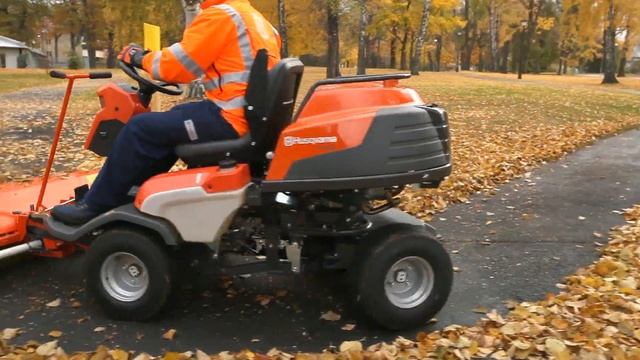 Husqvarna P 524 with broom in action