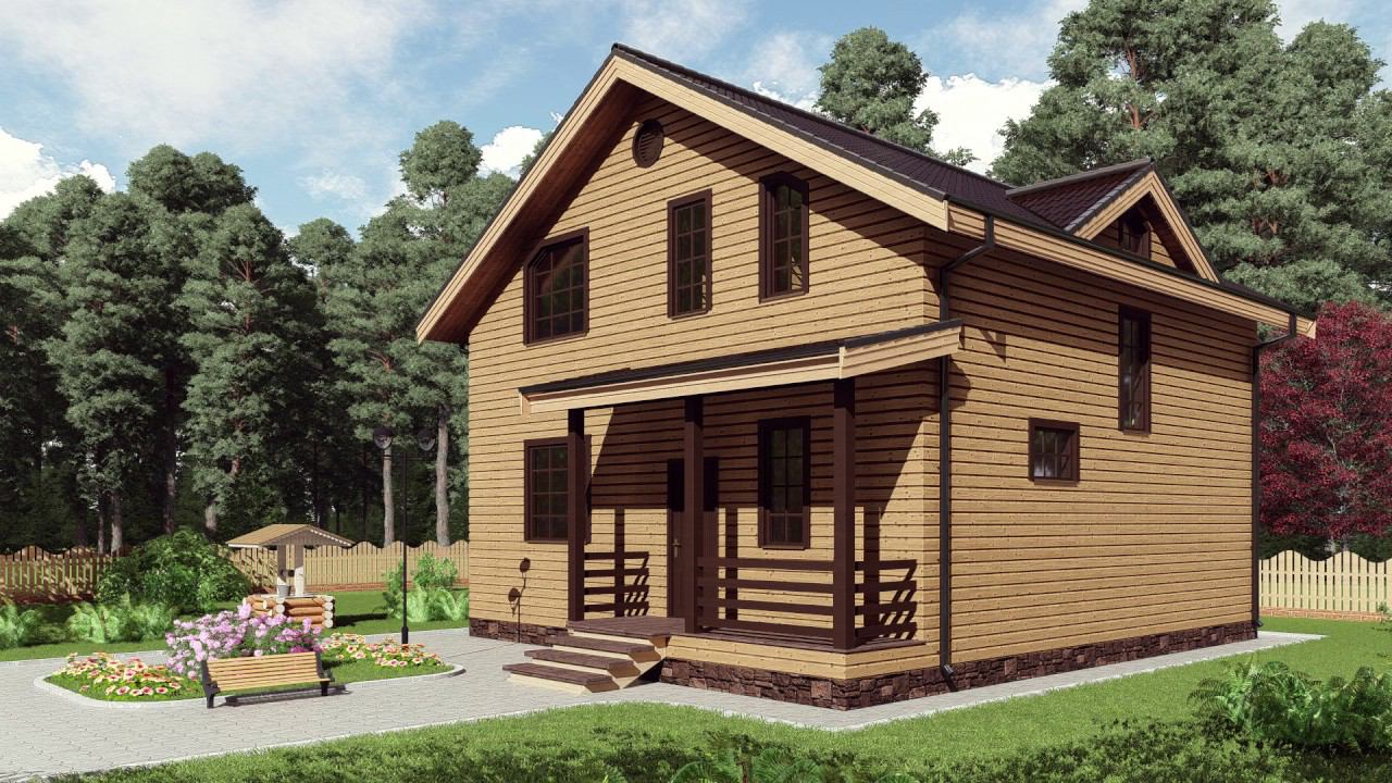 Проект каркасного дома 9*9с кукушкой и лестничным окном от "Строй и Живи"