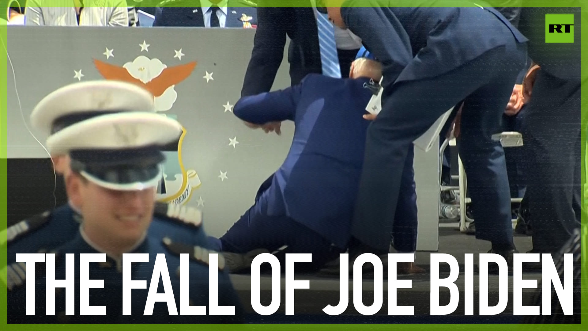Joe Biden tripped and fell after he handed out the last diploma at a graduation ceremony at the US Air Force Academy in Colorado Springs. The White House reported that the president was feeling fine. ------------------------------------------------------------------------------------------- Freedom over censorship, truth over narrative. Follow us on Facebook: https://www.facebook.com/RTnews Follow us on Telegram: https://t.me/rtnews Follow us on Twitter: https://twitter.com/RT_com