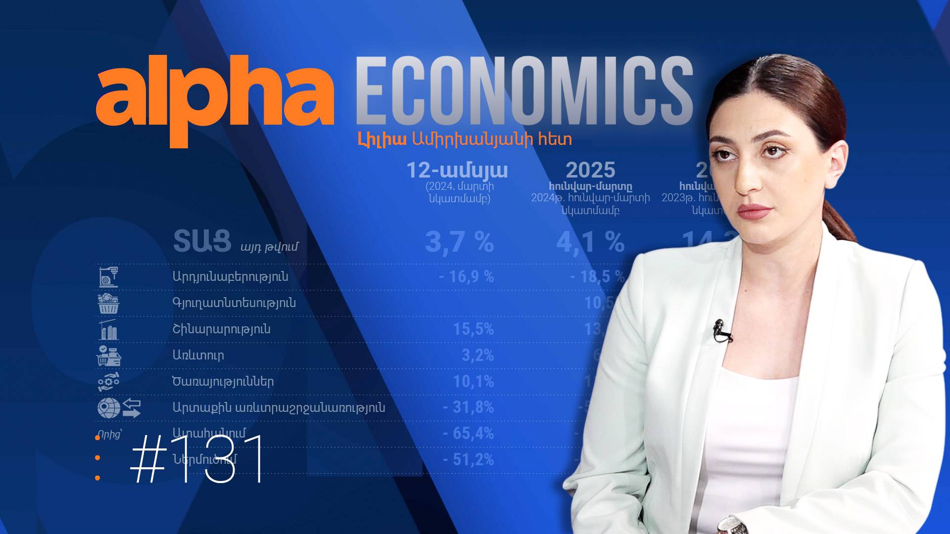 Оперативные данные об увеличении Индекса экономической активности (ИЭА) за первый квартал 2025 года свидетельствуют о достаточно тревожных тенденциях, хотя и предсказуемых. Речь идет о резком падении в нескольких направлениях. Не случайно, что спад был зафиксирован в областях внешнего товарооборота (в годовом исчислении -31,8%, квартальном -54,2%) и промышленности (в годовом исчислении -16,9%, квартальном -18,5%). Напомним, что это именно те направления, которые были двигателями экономики Армении, по крайней мере, в течение 2024 года. Для сравнения подчеркнем, что в январе-марте 2025 года снижение промышленности на 18,5% происходит на фоне роста на 30,4% за аналогичный период 2024 года. Или снижение экспорта на 61,8% вместо роста в 2,7 раза в прошлом году. Сами по себе показатели падения, конечно, неприятны, но это статистика, и, учитывая базовый эффект, такой результат был ожидаем в условиях утраты внешних влияний. Однако тревогу вызывает нечто другое. Например, тот факт, что снижение в промышленности объясняется не только фактором реэкспорта, но и падением объемов производства и экспорта в основных экспортных направлениях, например напитков, в частности коньяка, одного из наших основных экспортируемых товаров. Что можно считать образцовым ожиданием в такой ситуации? Реализация надлежащей и стимулирующей политики в отношении экспортируемых направлений. Можно ли ожидать реализации такой политики от действующих властей, если она не была проведена даже в условиях положительных шоков в экономике? По крайней мере, оптимистичного ожидания нет... Подробности в видео