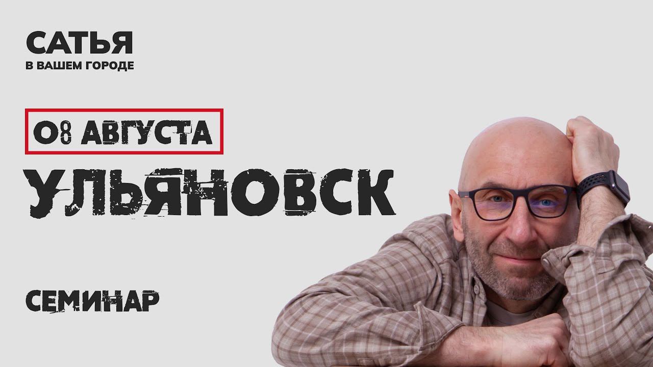 8 августа Сатья в Ульяновске. Новый, уникальный формат Не знаешь кто такой Сатья? 4,5 миллионов подписчиков в соцсетях и YouTube. Входит в топ 10 лидеров доверия россиян среди блогеров. Автор 17 книг по семейной психологии. Провёл более 7000 консультаций для мужчин, женщин и пар. 29 лет женат на одной женщине, а это уже талант. Такого семинара Вы ещё не видели. Это Новый, уникальный формат. - Никаких энциклопедических и абстрактных фраз - Без оторванных от жизни примеров и ситуаций -Только знания, которые реально применить прямо здесь и сейчас! С ответами на вопросы гостей семинара С разбором конкретных ситуаций из зала С пошаговым планом действий под определённую проблему в стиле Сатьи - весело и жизненно! Купить билеты на семинар Сатьи: https://th.link/2Bpqw Заказ книг на сайте: https://th.link/2Bpr6 Получить консультацию психолога: https://cbiletom.ru/event.php?event=2694 Ссылки на другие соц.сети : https://th.link/2BprQ Серия бесплатных уроков о построении отношений — https://th.link/2BprY #сатья #сатьядас #нескучнаясемейнаяпсихология #семейнаяпсихология #семья #любовь #сатьяэксперт #постороениеотношений #детскоевоспитание #женскаясамооценка #мужскоеиженское #женщинаиработа #счастливаясемья #секс #дети #женскаяпсихология #мужскаяпсихология #психология