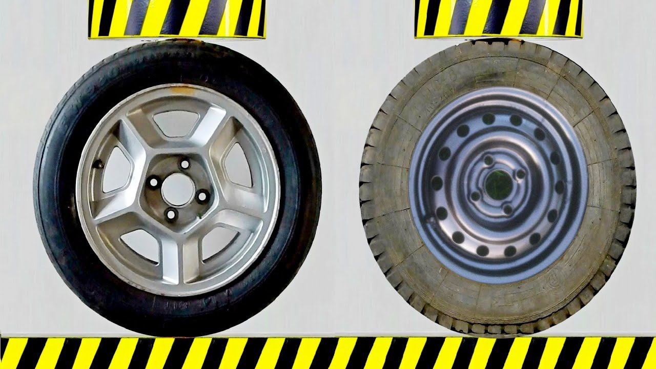 Using a hydraulic press, we will test the strength of wheels with aluminum and steel disks