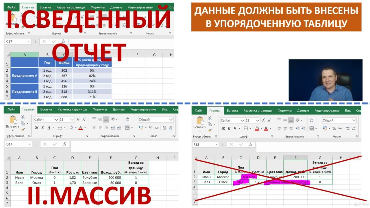 Получить доступ ко всему курсу можно по ссылке: https://t.me/worceller/86 Поддержите канал: https://boosty.to/worcel/donate Получите доступ к курсу по 3D моделированию: https://boosty.to/worcel Материалы к курсу: https://drive.google.com/drive/folders/1_YggwjVkY8ABDAMNNPFppxqRQhtviBBJ?usp=share_link Чему вы научитесь: Как пользоваться Excel: основы, меню и структура, логика работы, ввод и заполнение данных, организация данных, поиск\замена, копирование, сортировки и фильтры... Расчеты: основные формулы\функции, покрывающие 95% прикладных бизнес-задач (в т.ч. не только математические, а и логические, текстовые, статистические, ВПР...) Поиск знаний в массивах данных: сводные таблицы и сводные диаграммы Оформление данных: форматирование ячеек и таблиц (вкл. условное форматирование), группировки, шрифты и выравнивание, использование примечаний, вставка фигур-элементов и т.д. Визуализация: разные типы диаграмм (гистограммы, круговые, точечные, комбинированные, спарклайны и т.д.) Защита в Excel: защита листов и полей данных, правила проверки ввода, шифрование паролем. Откройте для себя мощь и силу MS Excel для обработки данных и повышения эффективности ЧЕГО НЕ БУДЕТ НА КУРСЕ: работы с надстройками (Анализ данных, Поиск решений, Power Pivot, Power Query, Power View), макросы (VBA), слияние данных, автоматизация, рисование дашбордов...