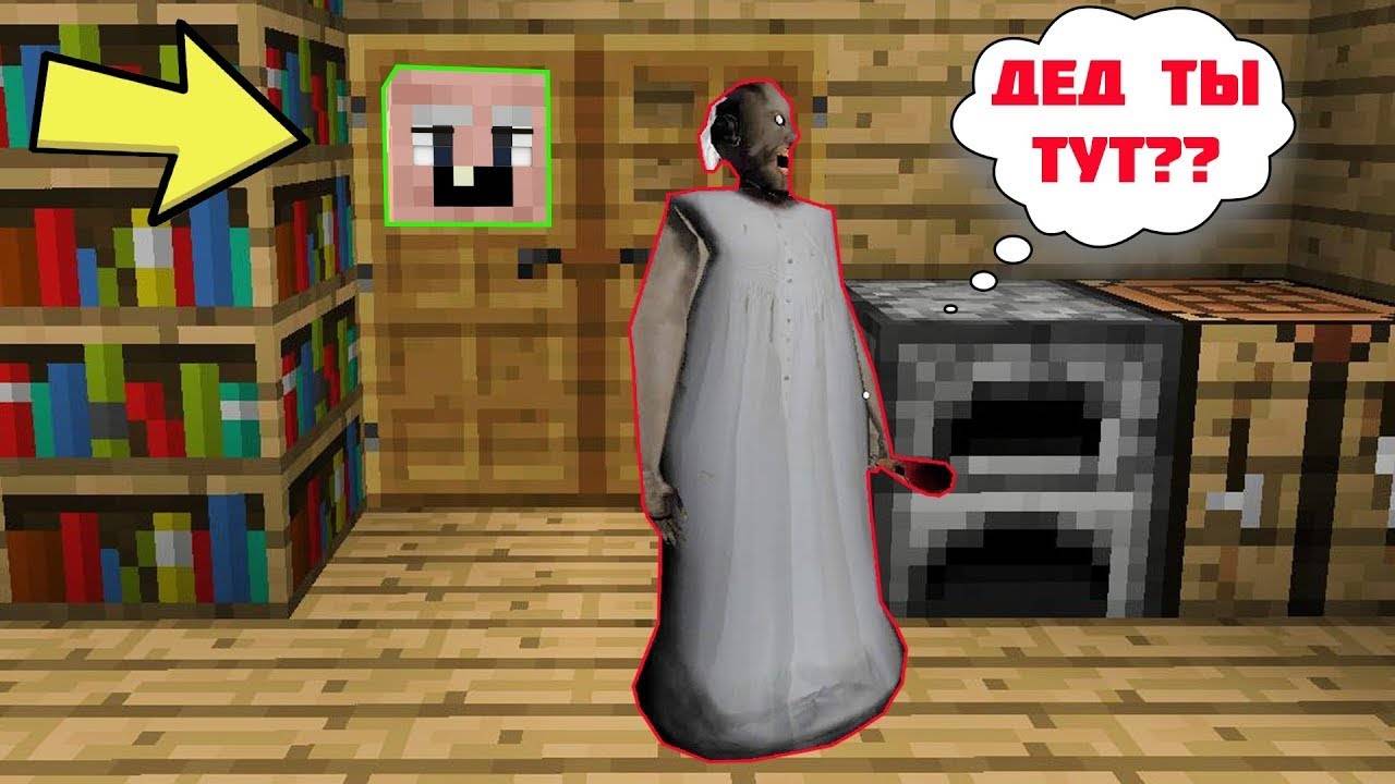 GRANDPA СПРЯТАЛСЯ В ДВЕРИ ОТ БАБКИ ГРЕННИ В МАЙНКРАФТ ПРЯТКИ НУБА И ПРО MINECRAFT ТРОЛЛИНГ GRANNY