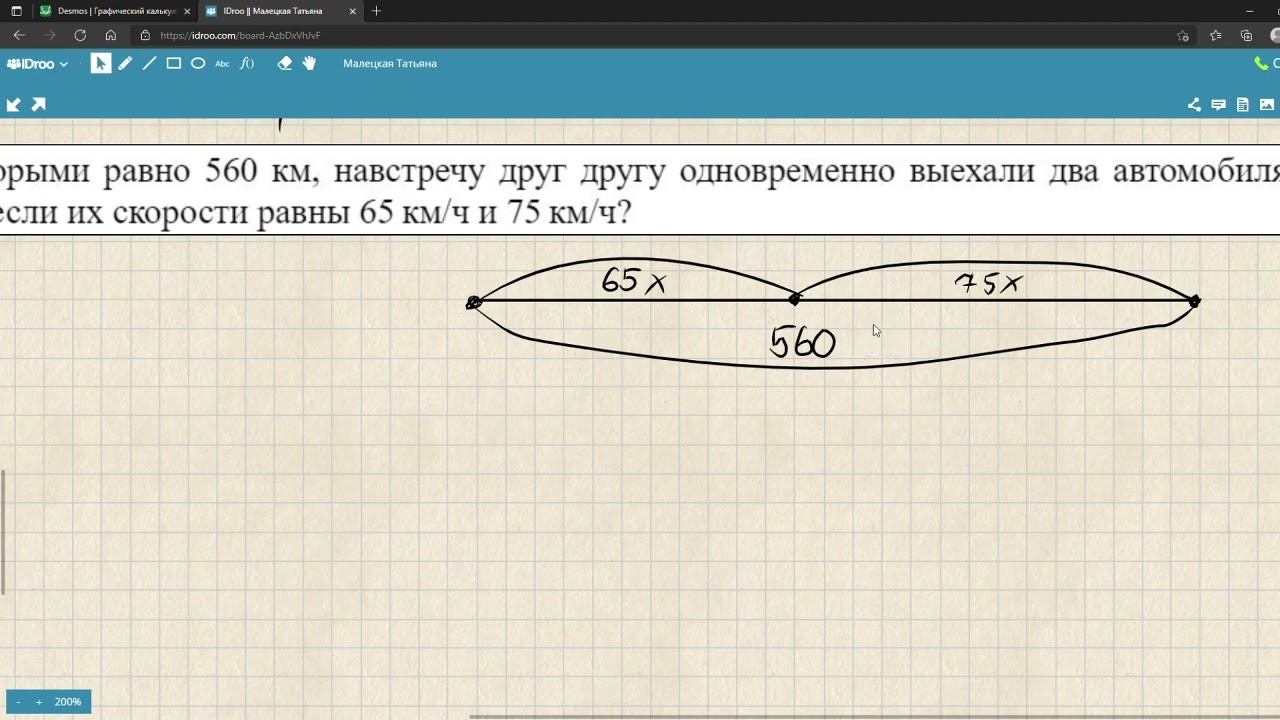 Из двух городов, расстояние между которыми равно 560 км, навстречу друг другу одновременно выехали два автомобиля. Через сколько часов автомобили встретятся, если их скорости равны 65 км/ч и 75 км/ч?