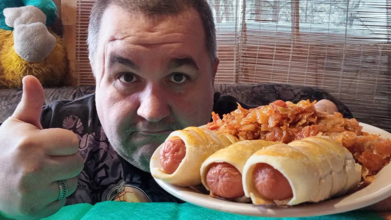 Обжор - сосиски в тесте | Мукбанг - солянка из капусты