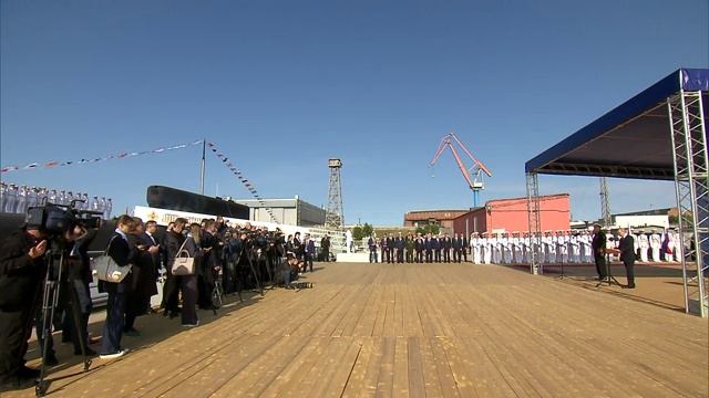 Церемония подъёма флага на атомном крейсере «Князь Пожарский» В Северодвинске на заводе «Севмаш»