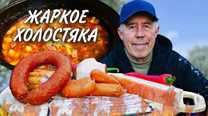 ХОЛОСТЯЦКОЕ ЖАРКОЕ с КОПЧЕНОСТЯМИ и КОЛБАСОЙ в КАЗАНЕ на КОСТРЕ