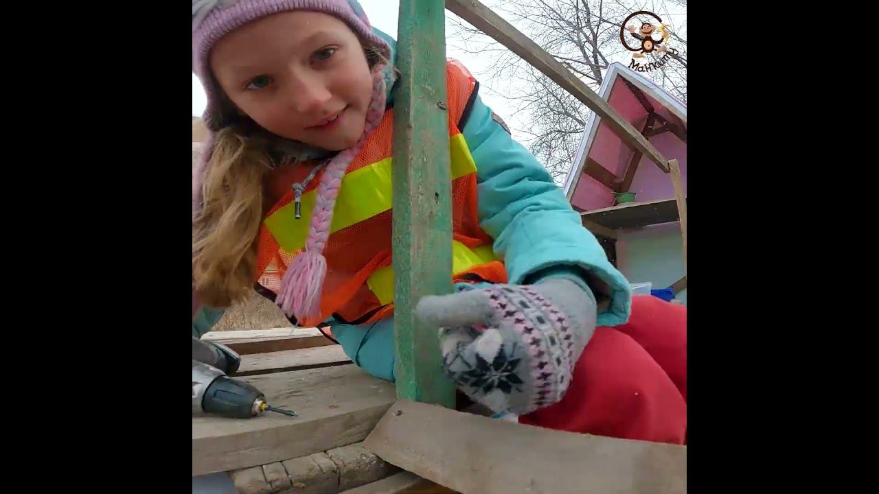 Диана и Даня строят гараж для своей детской машины. Манкиту