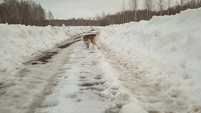 Хаски Умка поймала свою первую мышку этой весной. Прогулка с собакой.