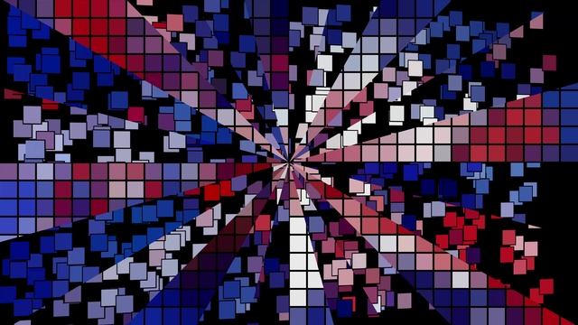 Синий красный белый абстрактный фон. Анимация плавающих пикселей, разделенных на сегменты. 4K.