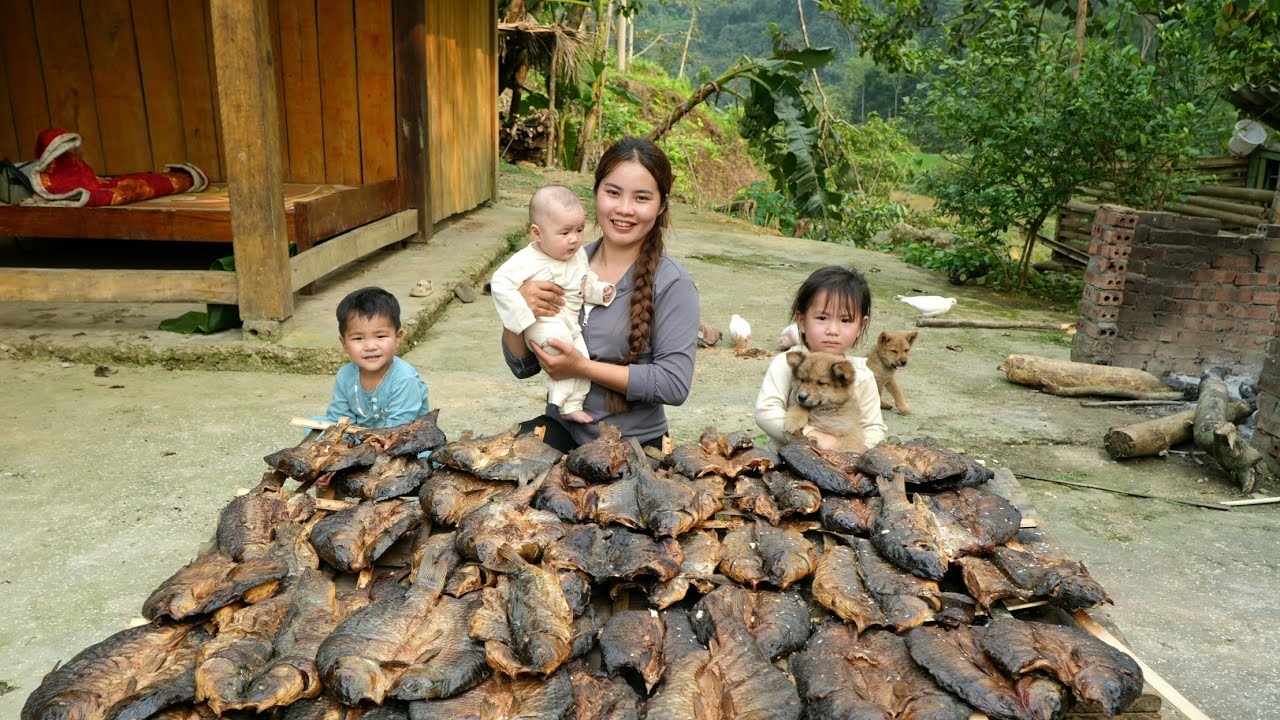 Собираю тыкву и сушеную рыбу и несу продавать. Дождливый и ненастный день. Дуонг