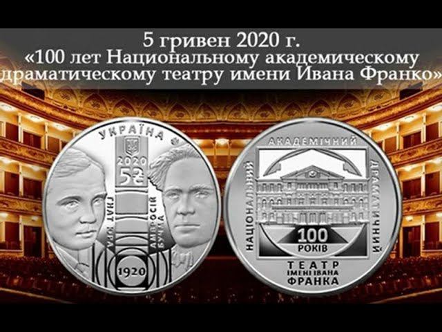 5 гривен 2020 г. "100 лет Национальному академическому драматическому театру имени Ивана Франко"