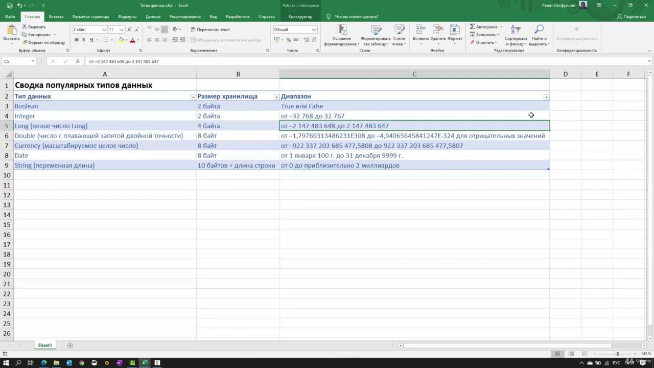 Объявление переменных типы данных. Переменные. Программирование макросов в Excel.