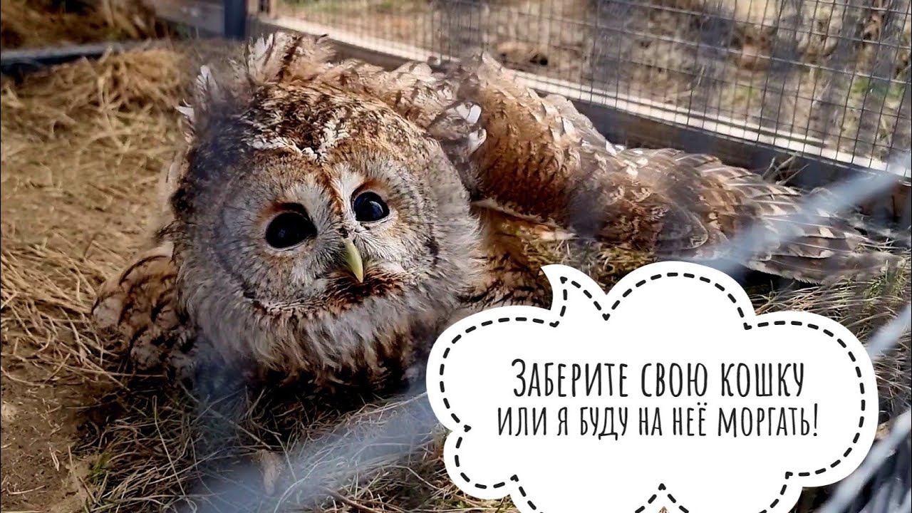 Кошка Морошка хозяйничает в саду. Совы неясыти открыли дверь в дуплянке, пришлось закрывать