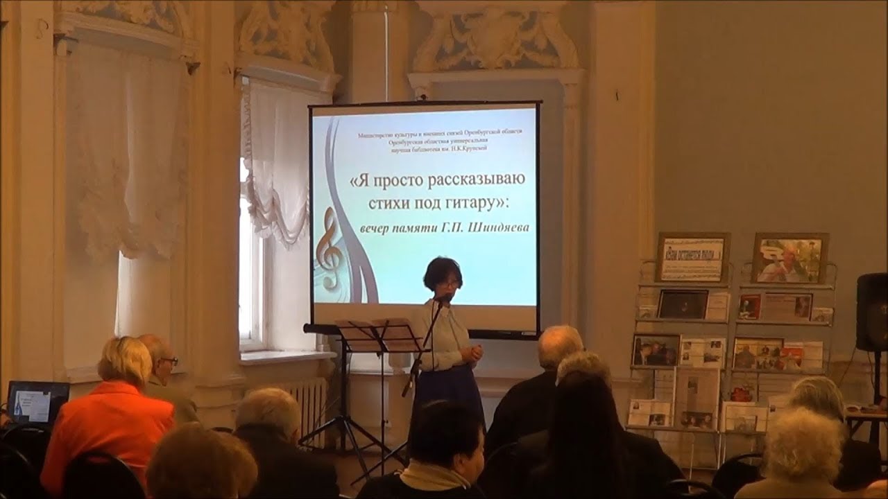 8 февраля 2019 г. в Оренбургской областной универсальной научной библиотеке им. Н.К. Крупской состоялся вечер памяти Геннадия Петровича Шиндяева, известного оренбургского поэта, композитора и барда. https://orenlib.ru/news/sobytija-i-meroprijatija/sostojalsja-vecher-pamjati-gennadija-petrovicha-shindjaeva.html