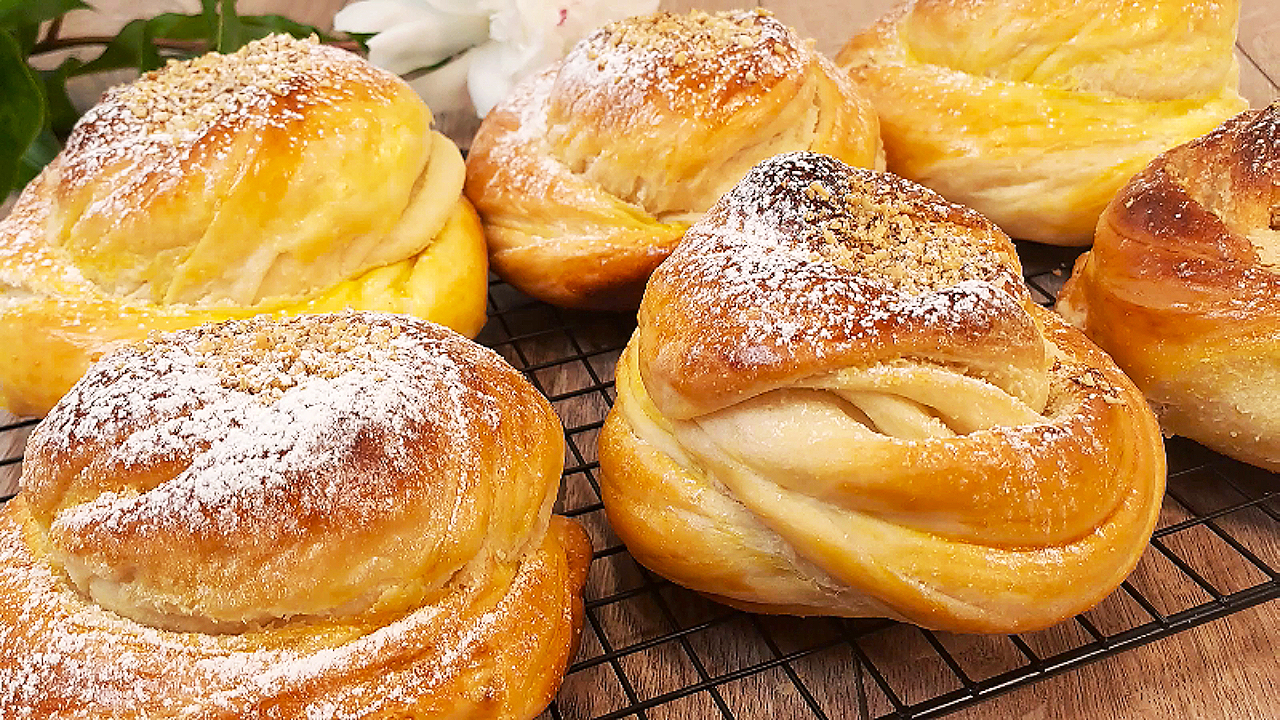Подписывайся на канал и делись видео с друзьями. Также у меня на канале еще очень много вкусных рецептов, и еще больше рецептов ждет вас впереди. Вконтакте - https://vk.com/vkusnierecipe Одноклассники - https://ok.ru/group/70000000861442 Дзен - https://dzen.ru/vkusnierecipes https://dzen.ru/isrecipe Весь музыкальный контент, использующийся в видео на данном канале размещён на основании лицензии Creative Commons 4.0 вариант лицензии CC0 (https://creativecommons.org/licenses/by/4.0/) с медиатеки, где не требуется указания авторства. Ингредиенты: 300 миллилитров теплого молока. 50 грамм сахара. 2 белки. 25 грамм ванильного сахара. 10 грамм сухих дрожжей. 600 грамм муки. щепотка соли. 100 грамм семян кунжута. 100 миллилитров растительного масла. растительное масло для смазывания. 2 яичных желтка и немного воды. измельченные грецкие орехи. сахарная пудра.