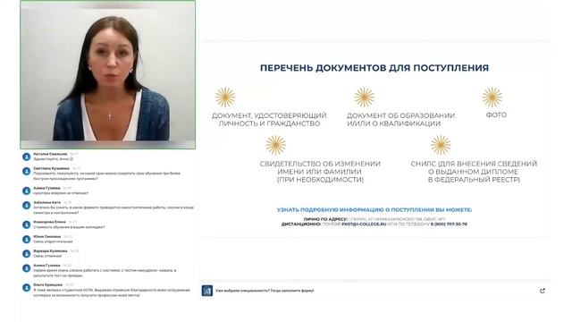 На Дне открытых дверей, который прошел в НСПК 7 июля онлайн, ответственный секретарь приемной комиссии и ведущий специалист деканата Кибишева Анна Александровна рассказала, как поступить в колледж. Она перечислила документы, необходимые для поступления в колледж. Анна Александровна отметила, что процесс поступления в колледж — не сложный, а специалисты приемной комиссии всегда готовы ответить на вопросы абитуриентов. ► Заходите на сайт distant-college.ru и выбирайте свою новую профессию! Действует акция: студенты колледжа обучаются второй квалификации бесплатно! Подписывайтесь на нас в соцсетях! ✔ Вконтакте - vk.com/distantcollege ✔ Telegram - t.me/nspk_college_group ✔ YouTube - www.youtube.com/channel/UCRDy