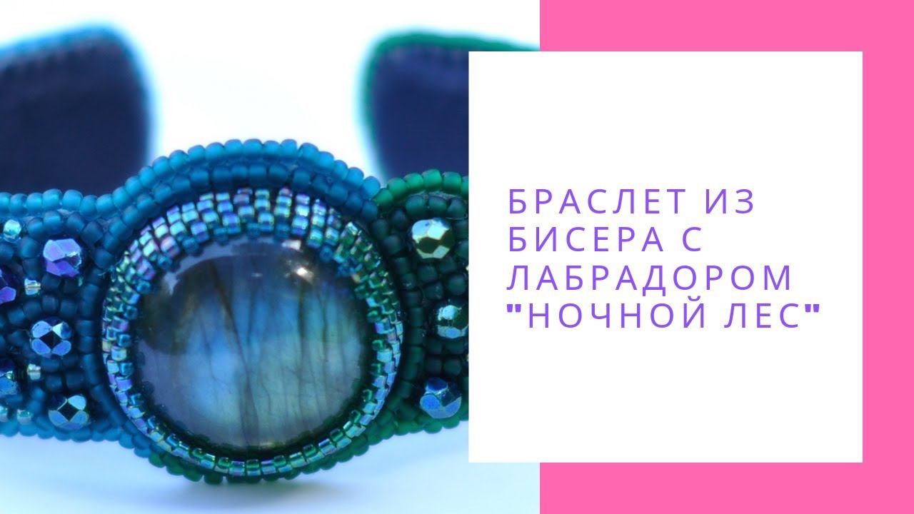 Браслет из бисера с лабрадором "Ночной лес" зеленый синий NataliaLuzik