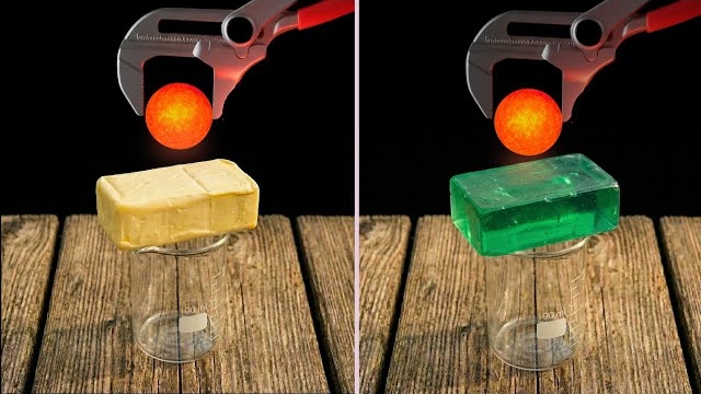 Как прожигает различные предметы раскаленый до красна металлический шарик