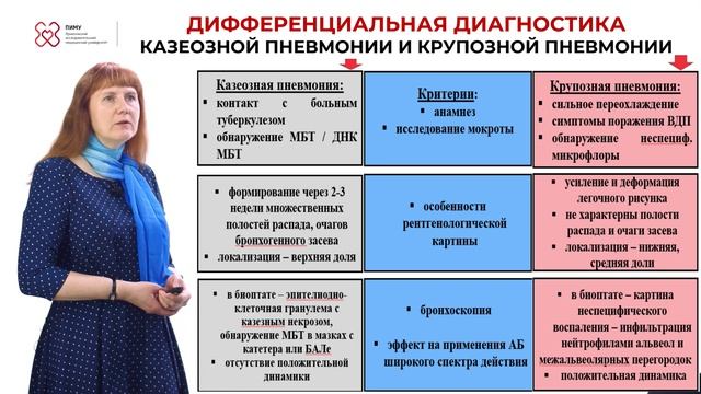 Лекция доцента кафедры фтизиатрии им. И.С. Николаева, к.м.н., доцента Сутягиной Д.А. - "Казеозная пневмония" (ПИМУ)-2025