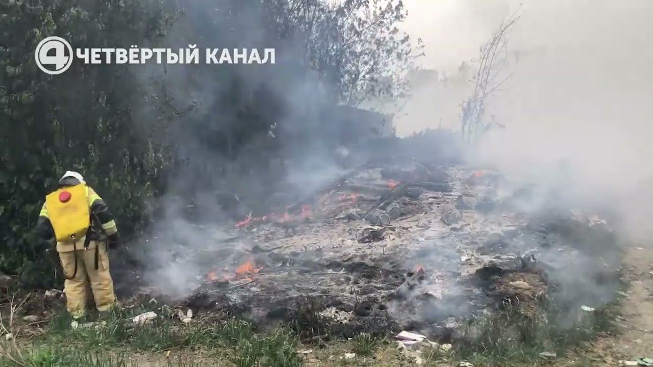 Делимся с вами кадрами тушения пожара на Пионерке К счастью, возгорание удалось локализовать. Угрозы распространения огня на жилые дома нет. #Екатеринбург #четвертыйканал #пожар