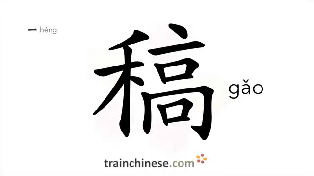 稿 (gǎo) draft; manuscript; stalk of grain; sketch; straw
