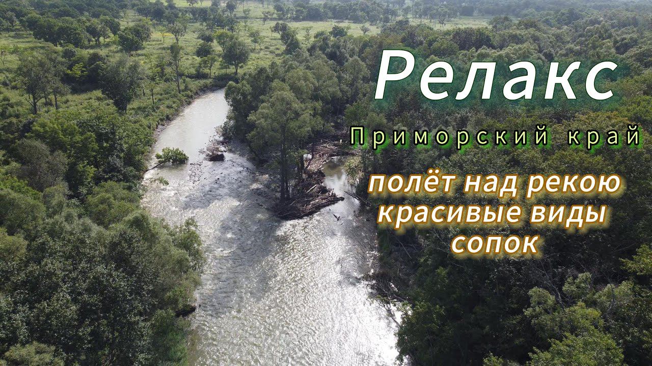 Релакс полёт над рекою с видами на окружающие сопки