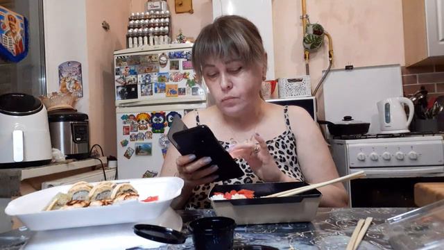 Роллы, Мукбанг, не весь заказ доставили , фуу Воняет, Пробую креветки опять .